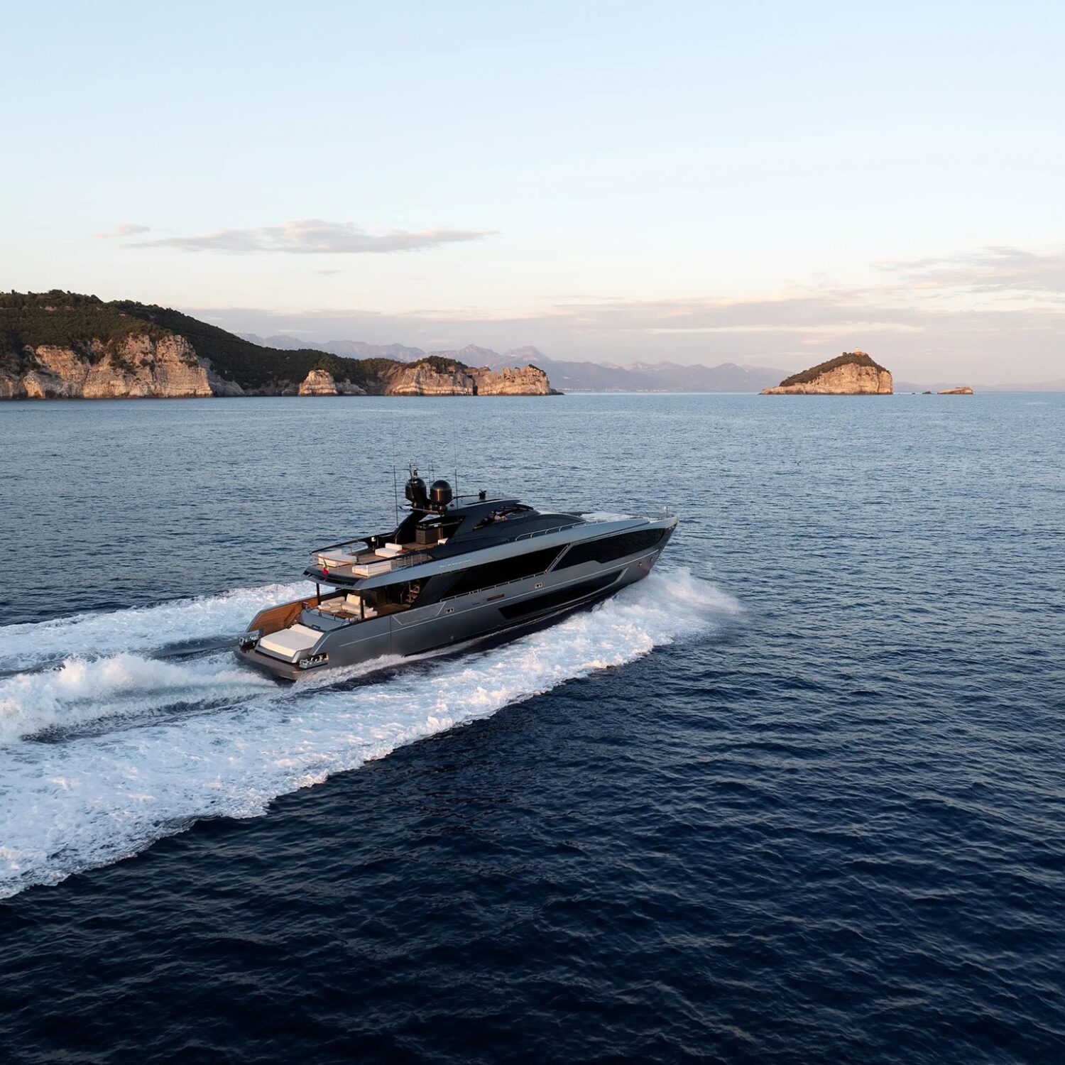 Majestic like the work of art she is, as scintillating as the most magical epoch in modern history, 110' Dolcevita is Riva’s new fibreglass flagship...